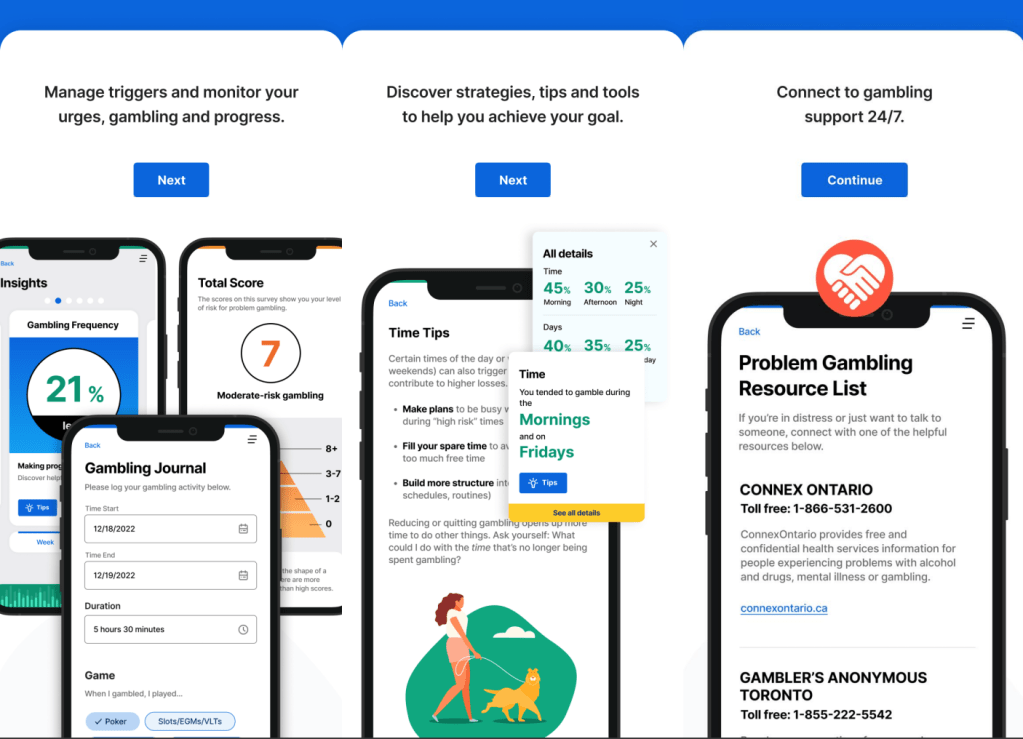 We are using findings from research with people facing gambling problems and with service providers who work with people who gamble to understand best practices in gambling recovery. The app supports recovery in the following ways: